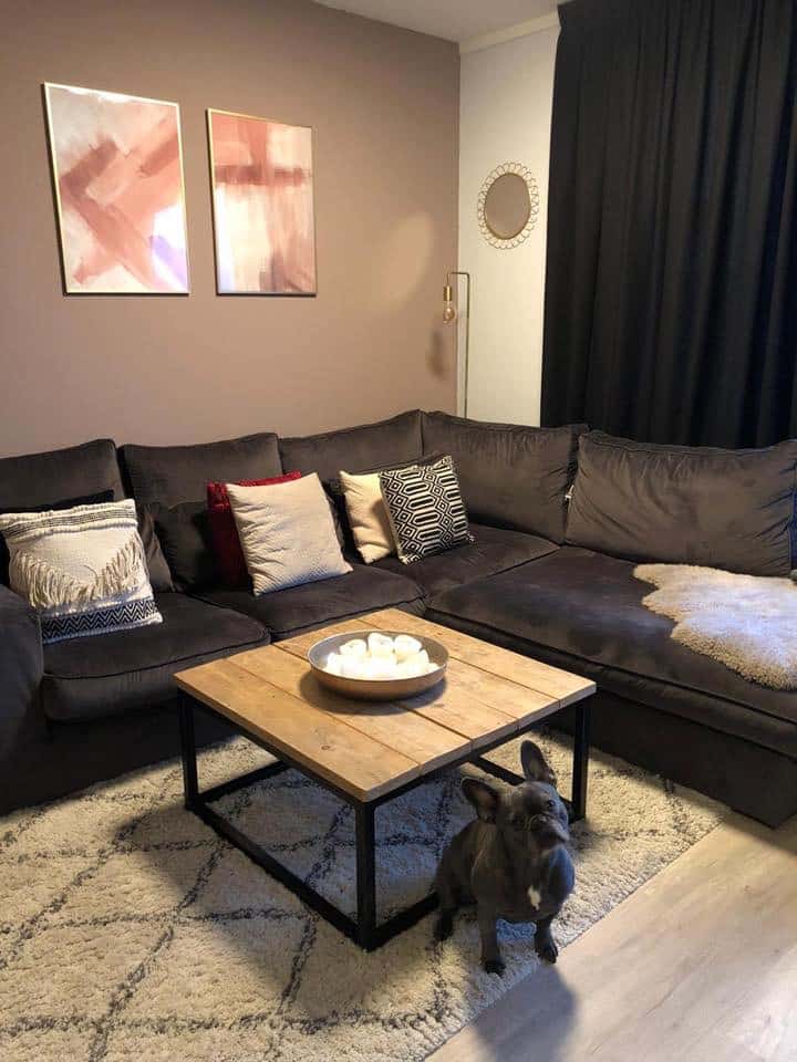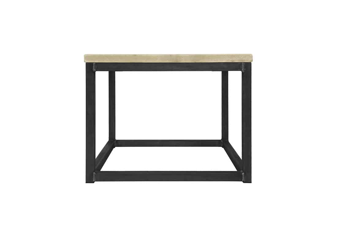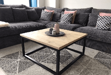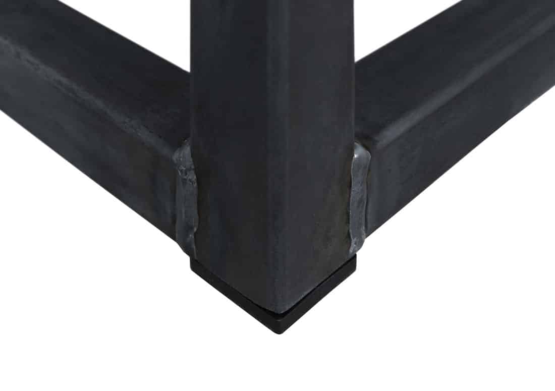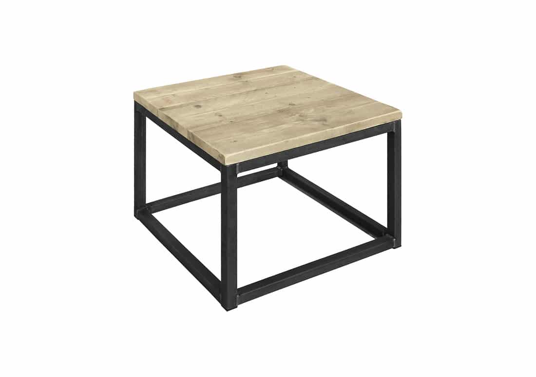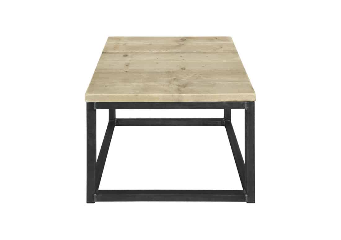 Onze salontafel model Tustin heeft een stalen onderstel van 3 x 3 cm koker. De koker ligt zowel op de grond als onder het steigerhouten blad.
