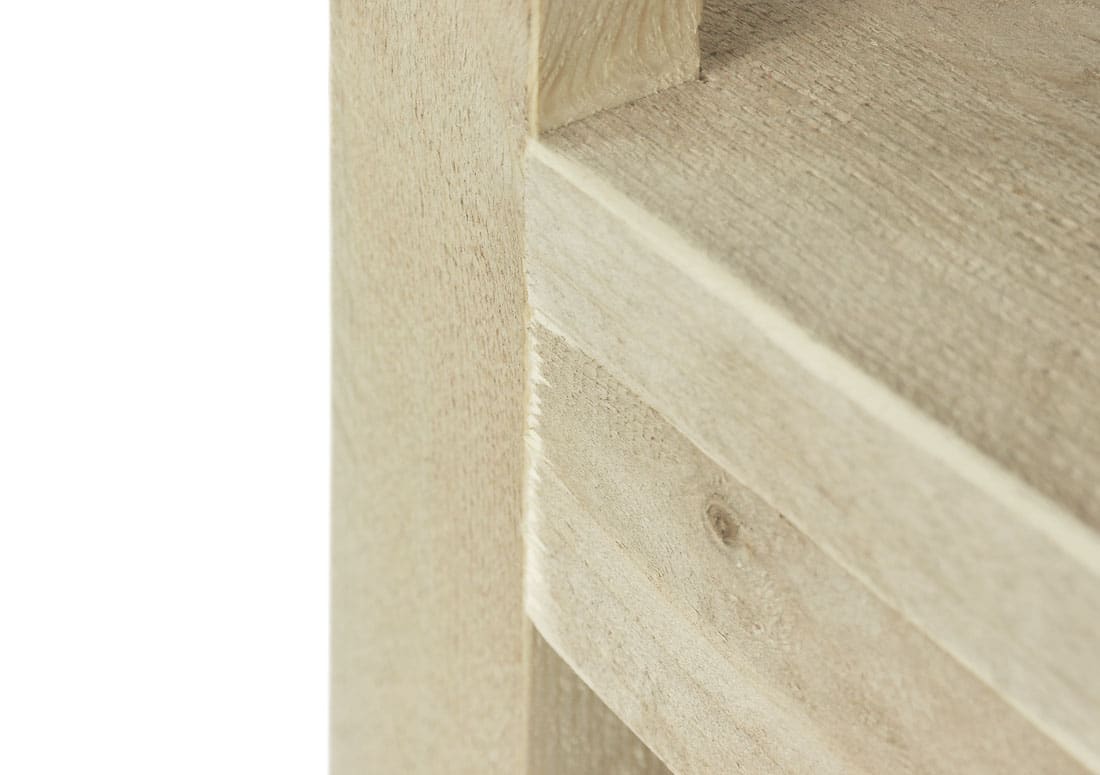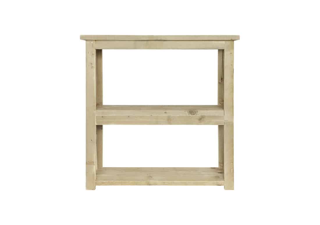 Steigerhouten sidetable model Ohley heeft drie legplanken. Hierdoor is er voldoende ruimte om op te bergen. We schuren al onze meubelen machinaal dus absoluut geen splinter. Standaard wordt dit meubel gemonteerd geleverd. Wil je het meubel net even iets anders? Dat kan!