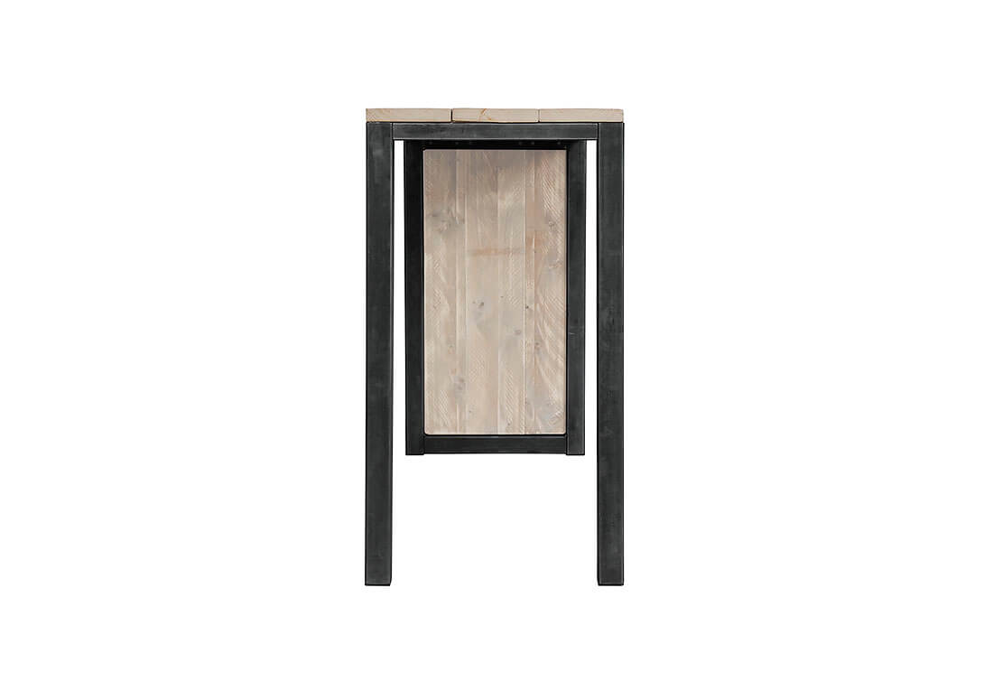 - Stalen frame van 6 x 6 cm, zijkant met steigerhouten paneel