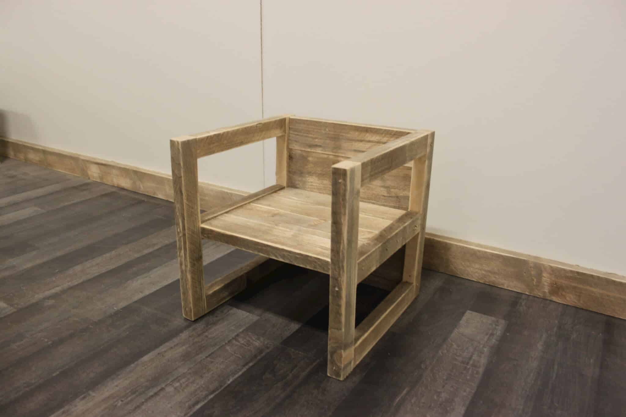 In een handomdraai verander je deze steigerhouten stoel in een leuk tafeltje. De afmetingen zijn net even kleiner, dan een normale stoel. Ideaal voor de kinderslaapkamer of een kinderdagverblijf. Dit unieke meubel is gemaakt van gebruikte steigerplanken en daardoor heeft ook elk meubel zijn eigen karakter. Uiteraard wordt dit meubel machinaal geschuurd en is splintervij, zodat jouw kind alle plezier ervan heeft.