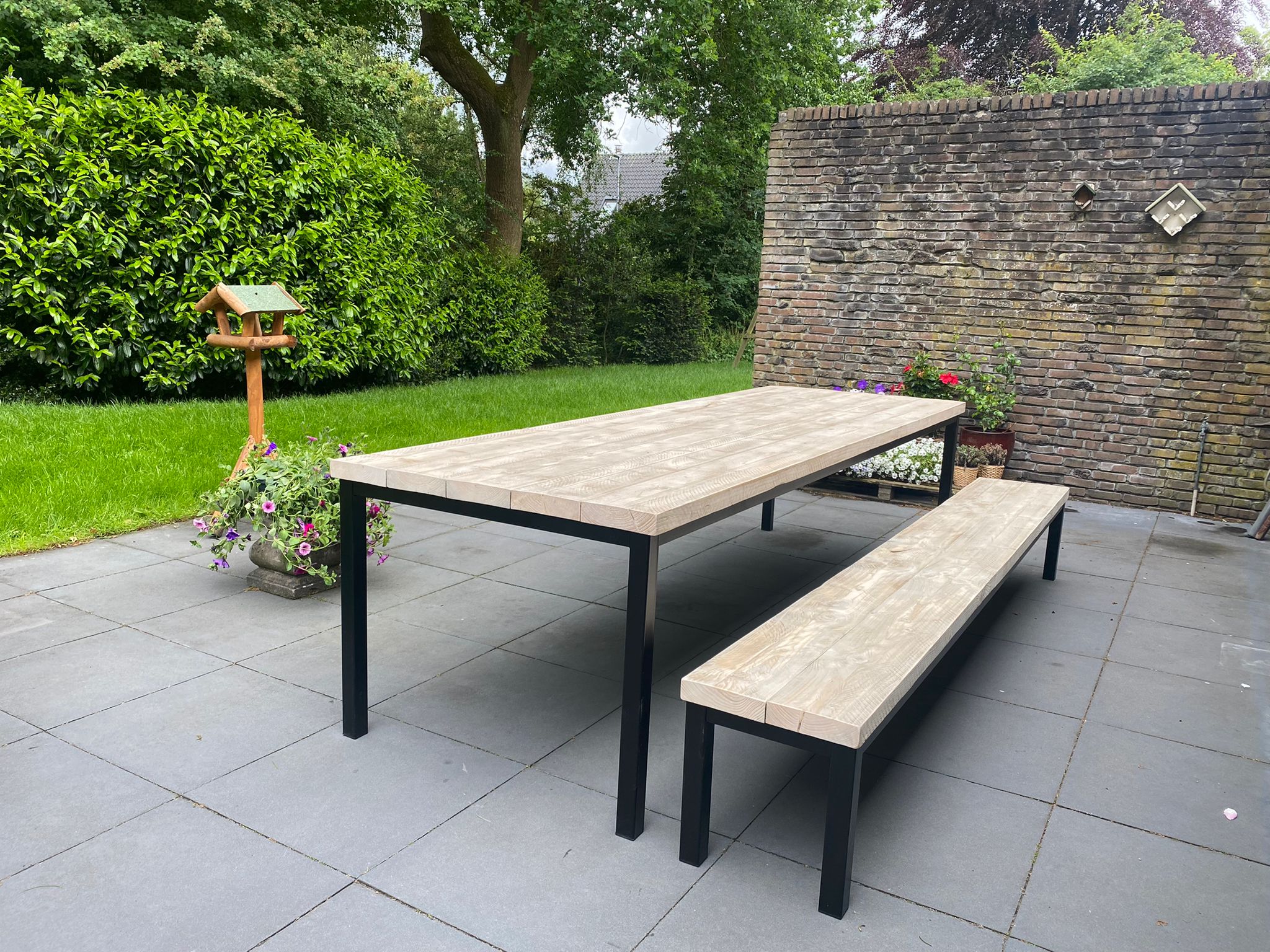 Staal behoeft weinig onderhoud, maar wanneer je hebt gekozen voor een onbehandeld frame, dan is de kans groot dat het frame zwart afgeeft. Voor de stalen frames en elementen adviseren wij altijd een behandeling van poedercoating of transparante lak.