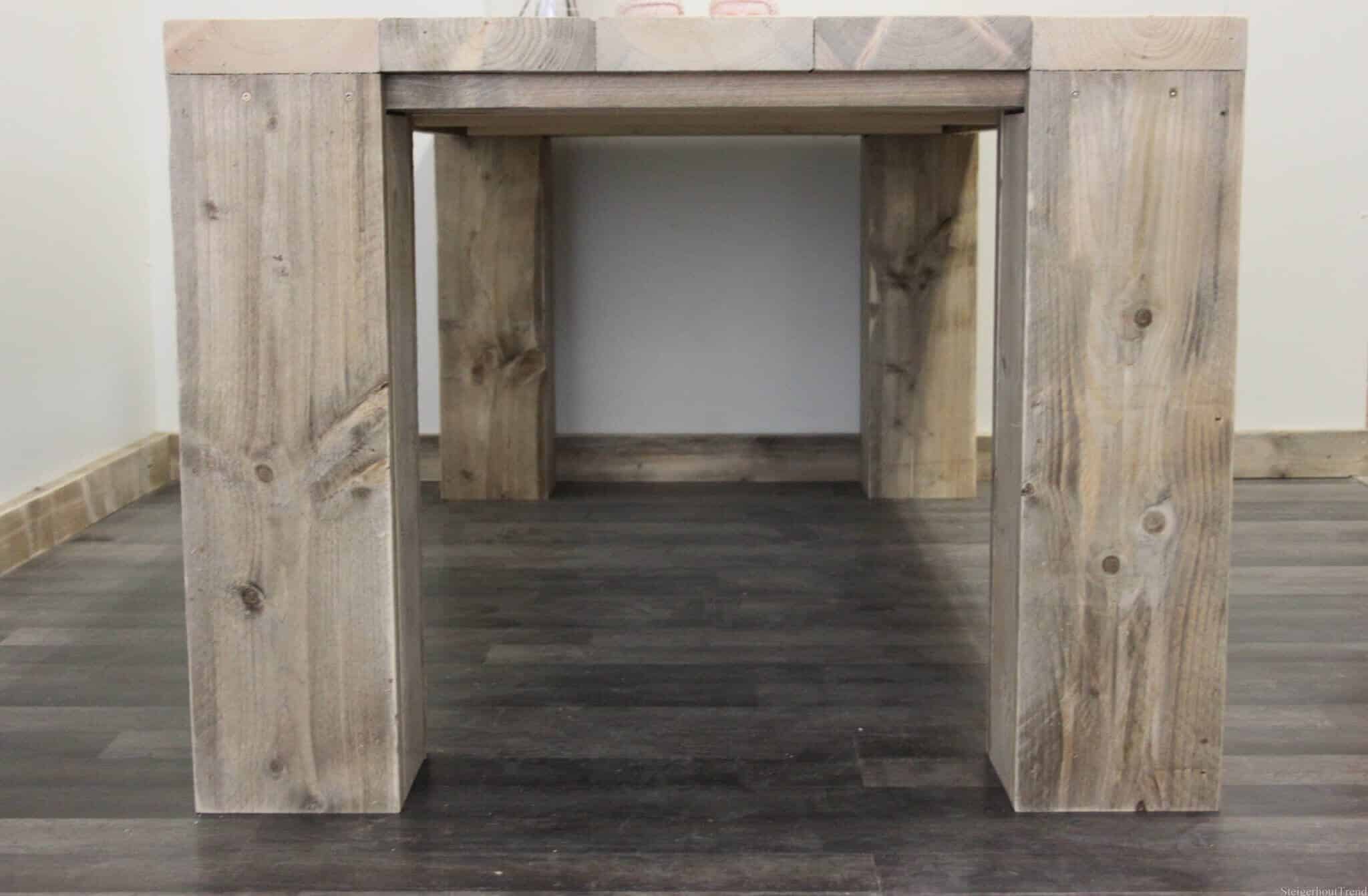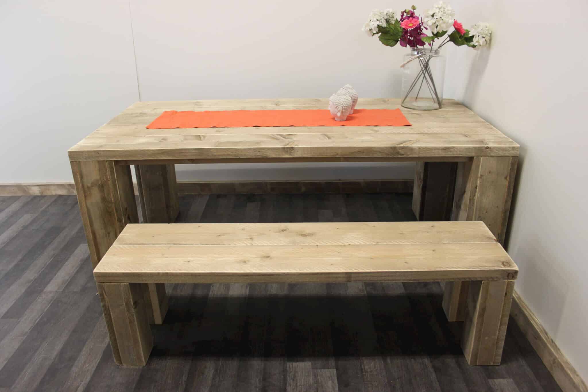 - Tafel met extra dikke steigerhouten planken (5 cm dik)
