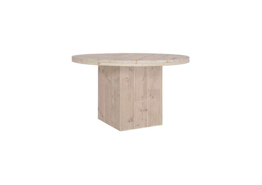 Steigerhouten tafel Crane met kolompoot en rondblad