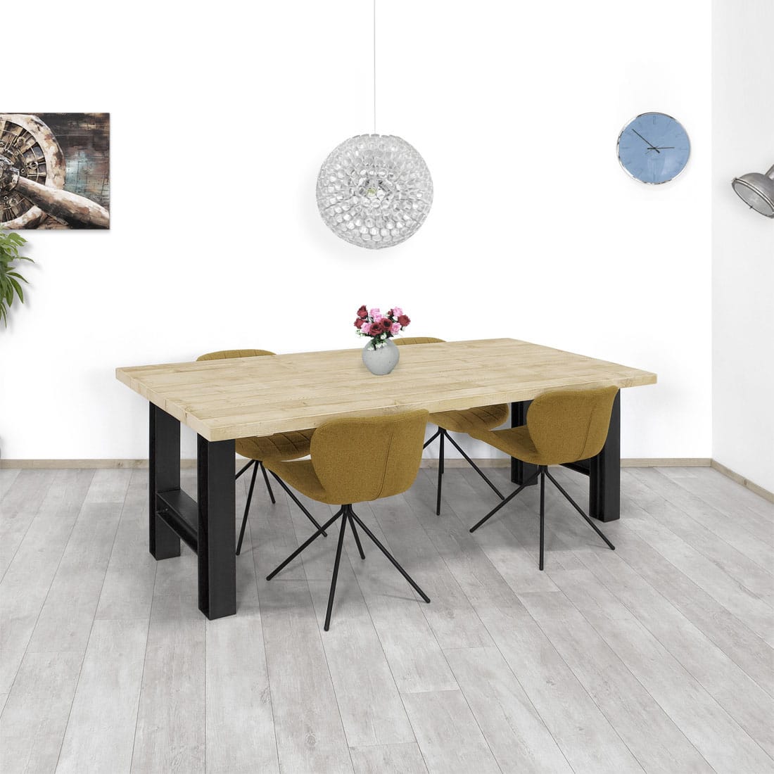 - Industriële tafel met dik steigerhouten blad