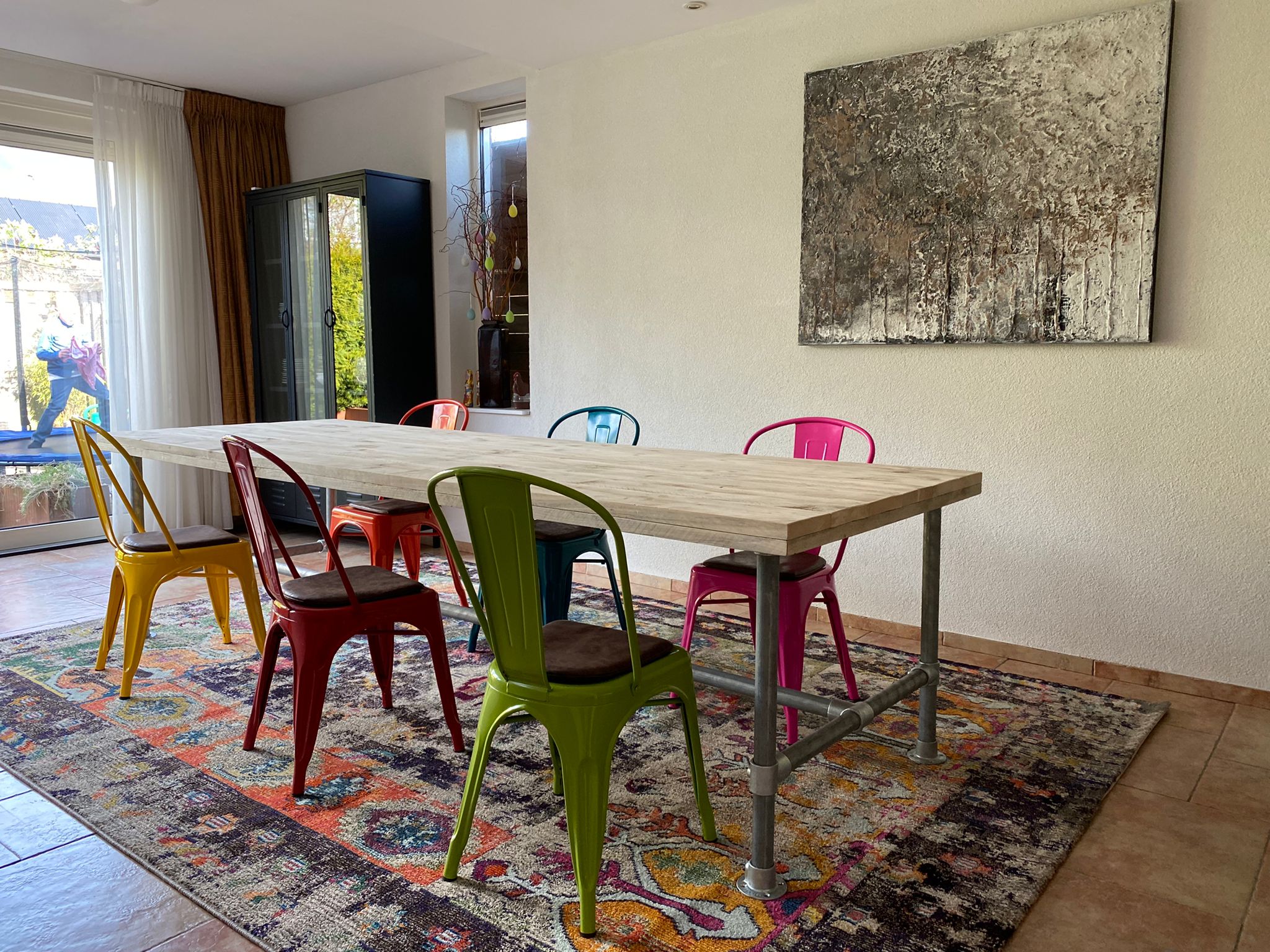 - Steigerhouten tafel met steigerbuizen onderstel 42 mm
