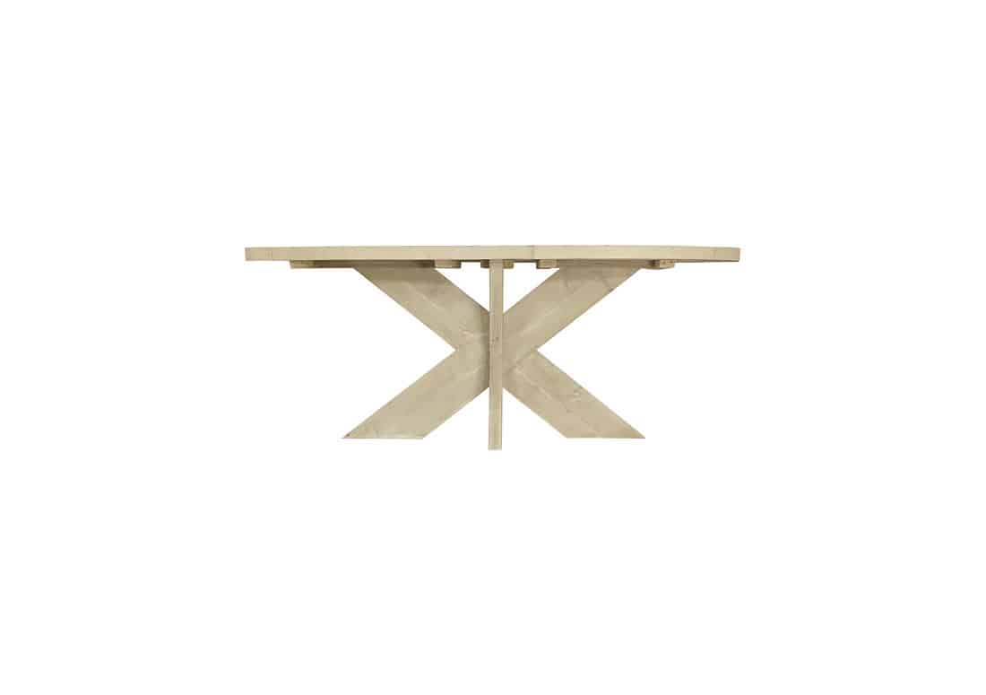 - Ovale steigerhouten eettafel met kruispoten