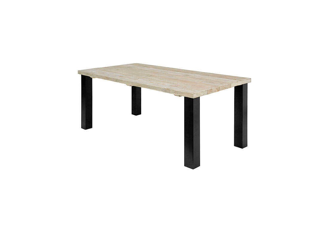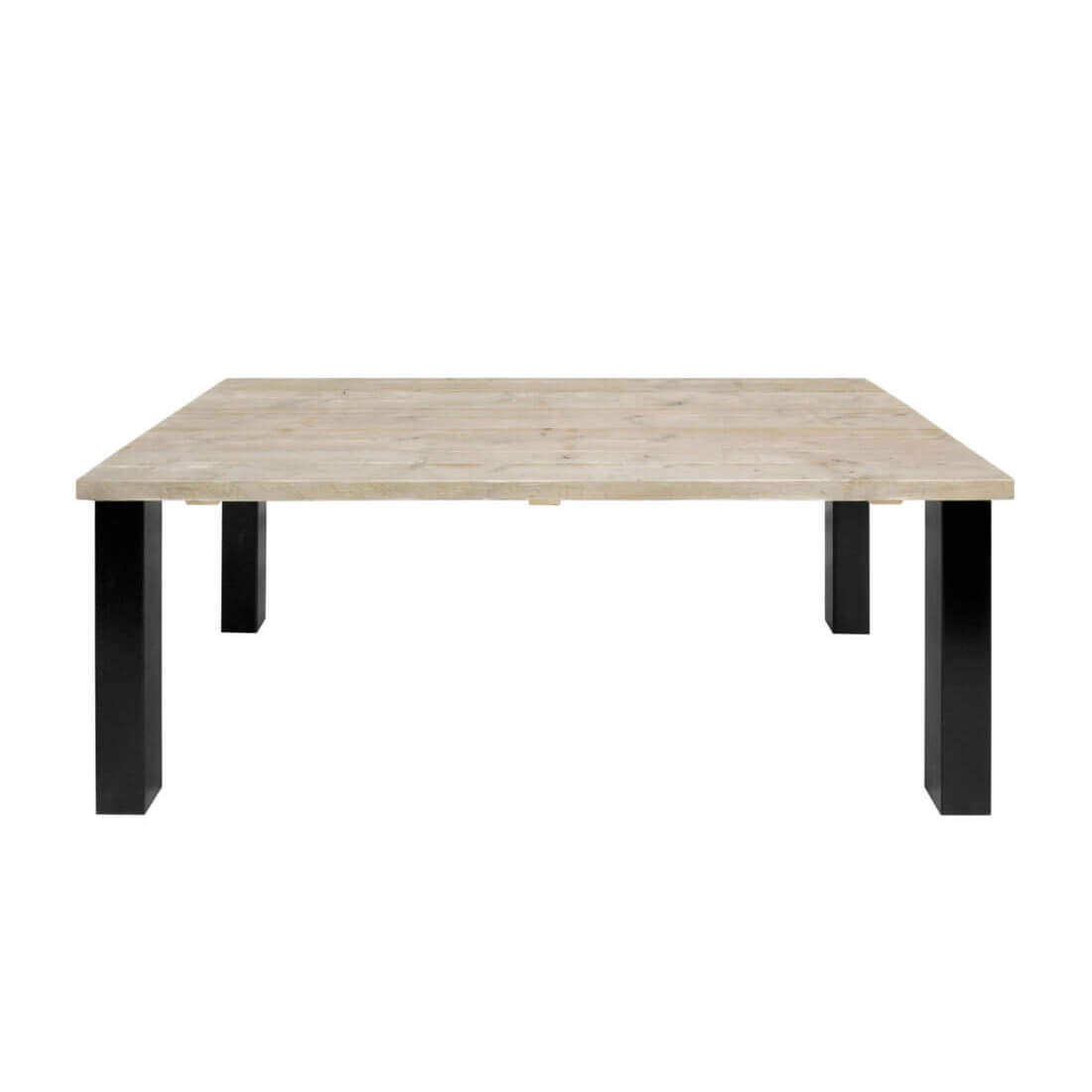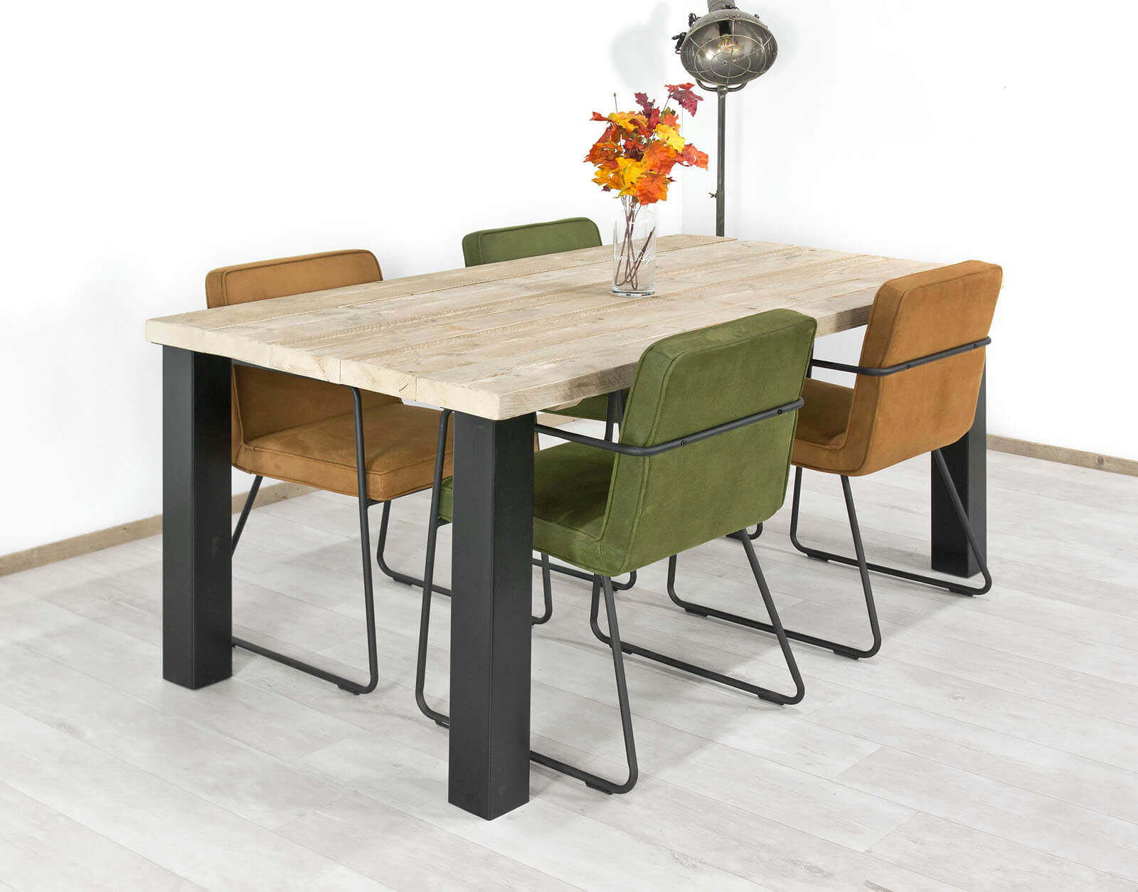 Robuuste tafel Roca met industrieel onderstel geeft je woonkamer echt karakter. Het onderstel heeft een koker van 10 x 10 cm en het blad is 5 cm dik.