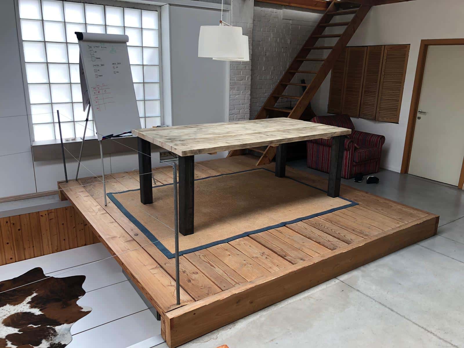 Let op! Een eikenhouten vloer kan sneller reageren op metalen onderstellen door het aanwezige looizuur in het eiken (reactie eikenhout op ijzer).