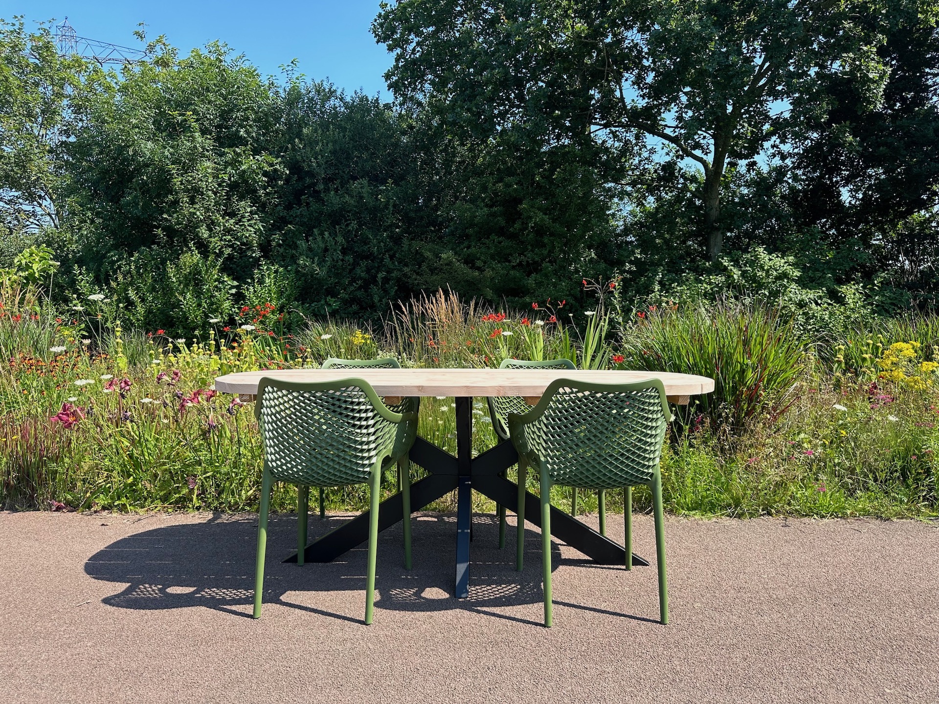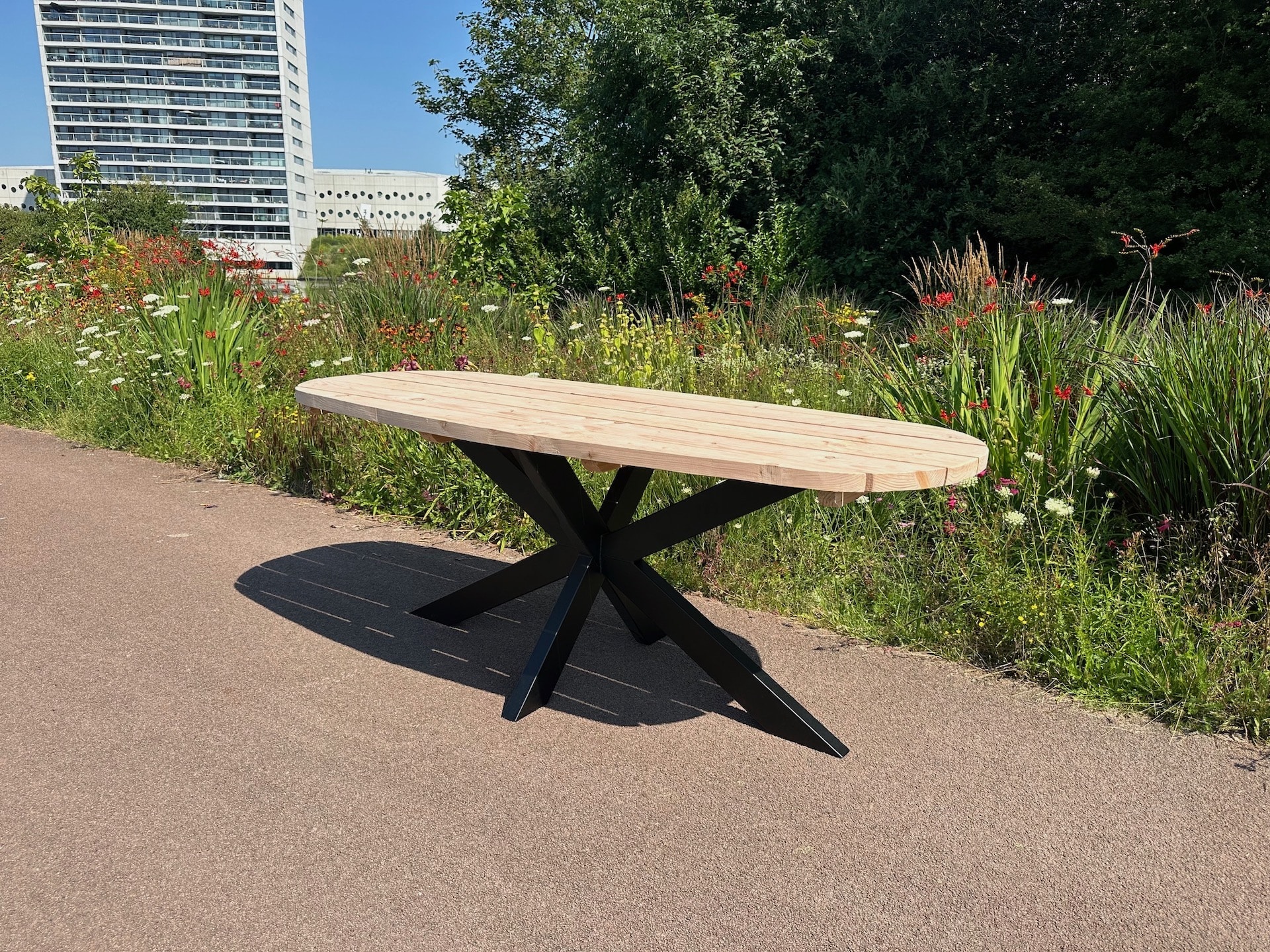 Steigerhouten tuintafel Malta met stalen U poten