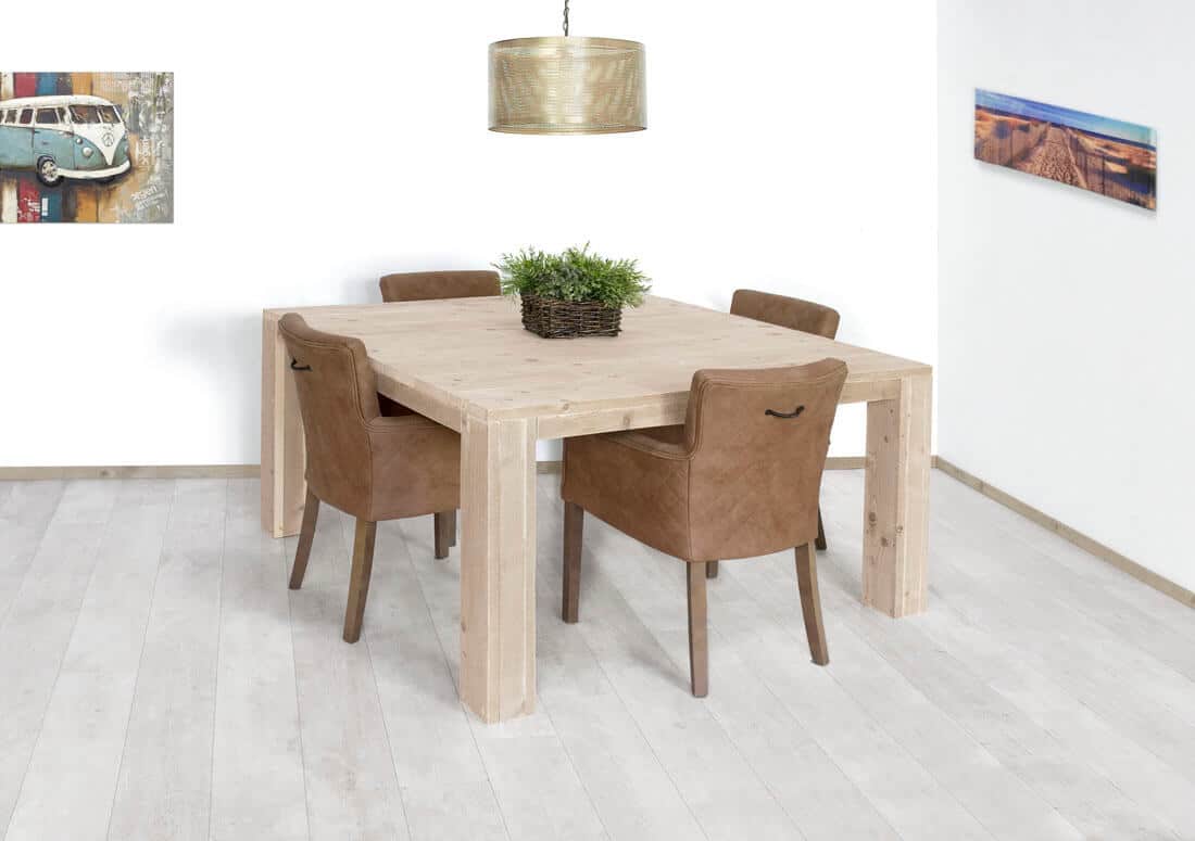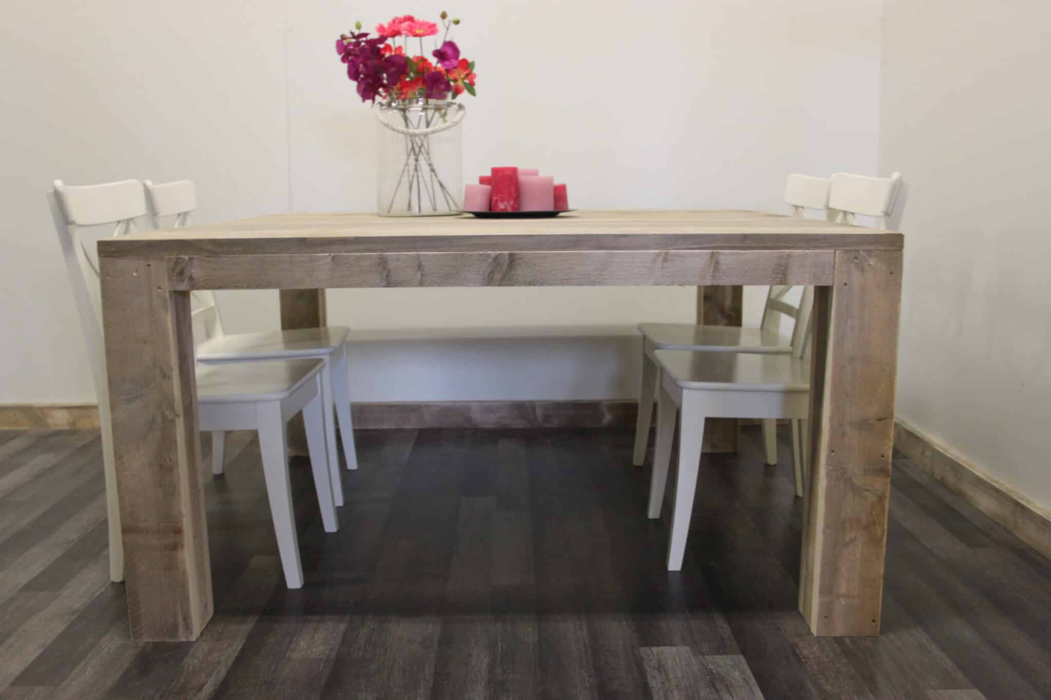 Deze vierkante steigerhouten tafel is één van de grootste tafels in ons assortiment. Deze tafel biedt ruimte voor acht personen (1.50 x 1.50). Ook is die zeer geschikt als vergadertafel of als presentatietafel in een winkel.