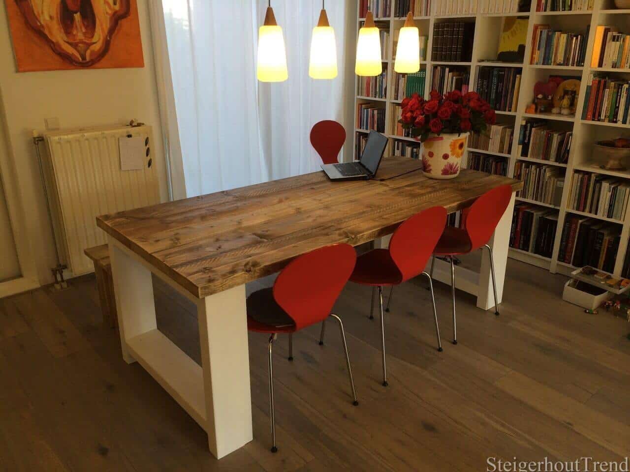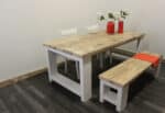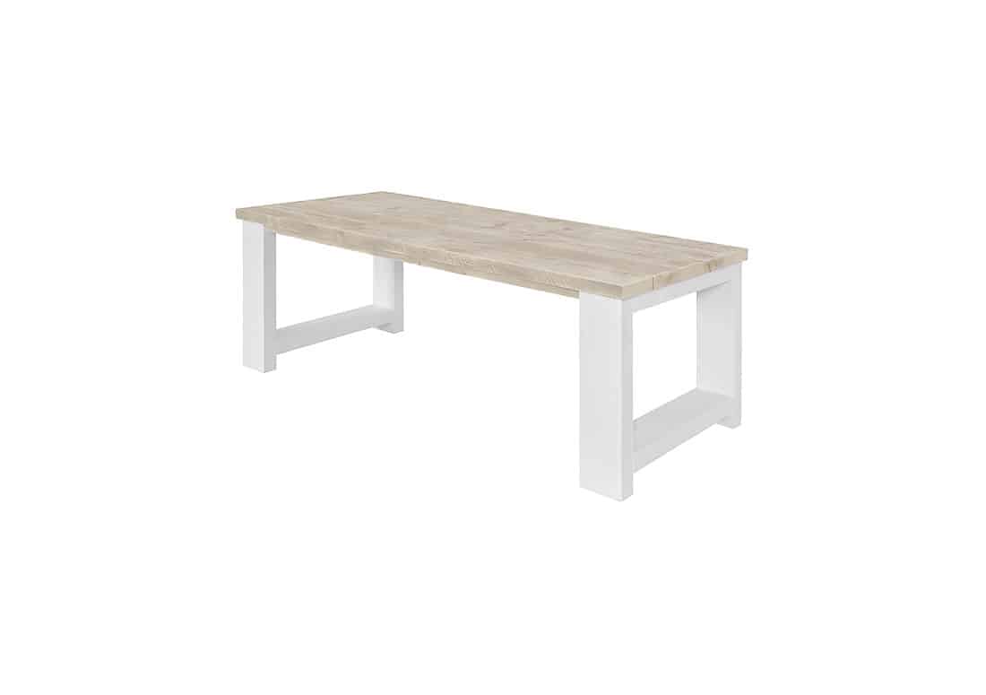 Steigerhouten tafel Tula met wit onderstel