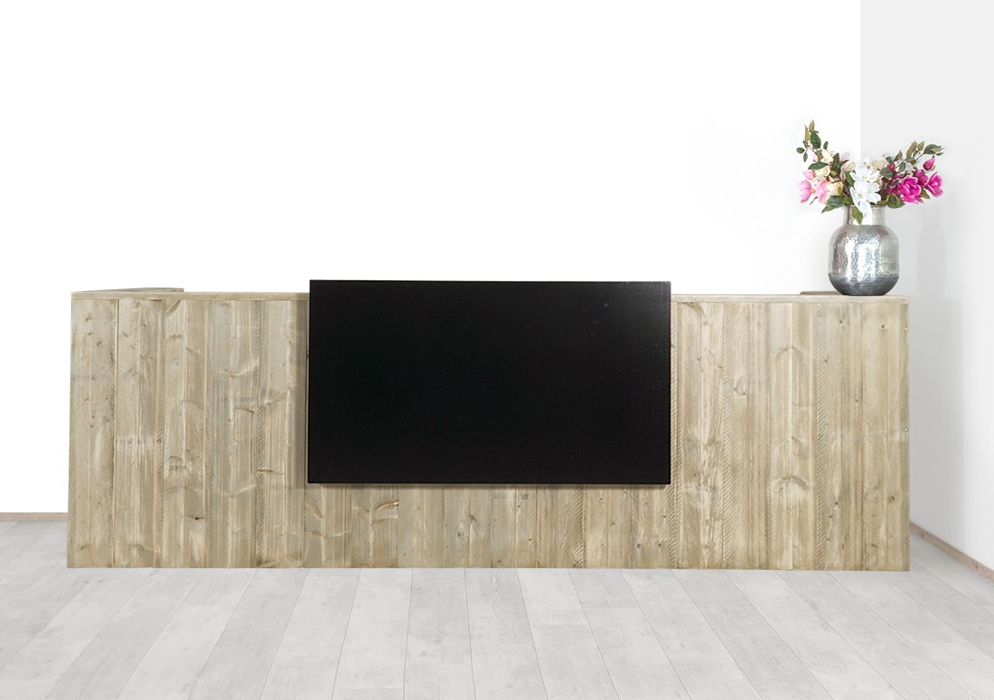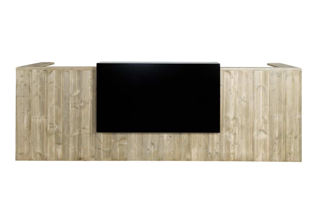 De Clinton is een luxe steigerhouten toonbank met verstekrand en is in verschillende maten te bestellen. Deze zijn allen voorzien van een opzetstuk, dan is één derde deel van de toonbank bedekt. Het opzetstuk is optioneel en leverbaar in diverse kleuren, wat een persoonlijke twist geeft aan jouw winkel of kantoor. Ben je niet zeker over de kleur? Je kunt gratis samples aanvragen. Zo weet je precies welke kleur het beste bij jou past!