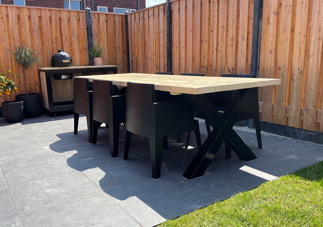 Ook voor buitenmeubelen adviseren wij het meubel te behandelen met een nanocoating. Lees meer over behandeling van steigerhout meubelen. Garantie op de meubelen vervalt wanneer je de meubelen zelf behandelt of aanpast. Doe dit dan ook altijd op de juiste wijze.