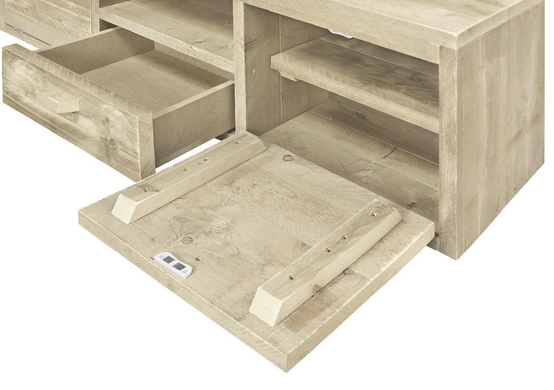 Steigerhouten TV meubel met klep en lade. Een aanwinst voor iedere woonkamer. Dit meubelstuk is naar eigen wens en smaak aan te passen. Neem gerust contact op met onze klantenservice.