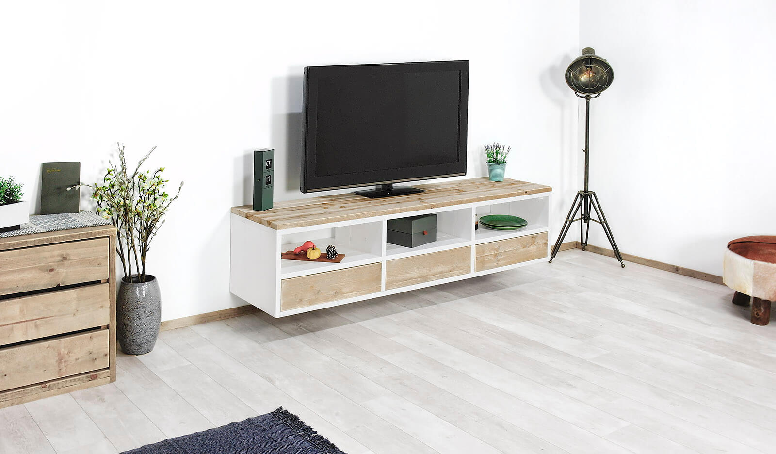 Steigerhouten hangend TV meubel Edon in landelijke stijl