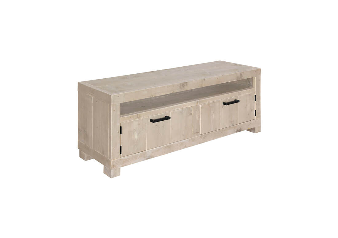 Een stoer mediameubel en een ware opberger. Het meubel heeft een mooie verstekrand van 6 centimeter. Met de industriële handgrepen heb je een stoere opberger in huis.