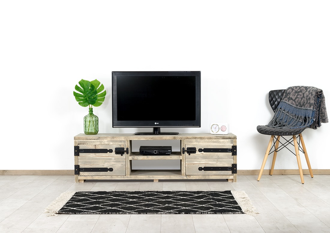 Steigerhouten TV meubel Weston met industriele scharnieren