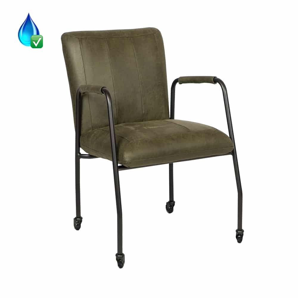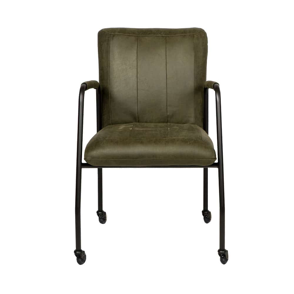 Stoel Mila op wielen eco-leer olijfgroen