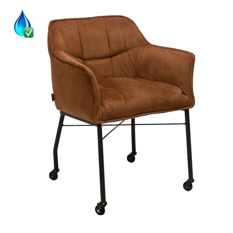 Stoel op wieltjes Mace cognac ribstof