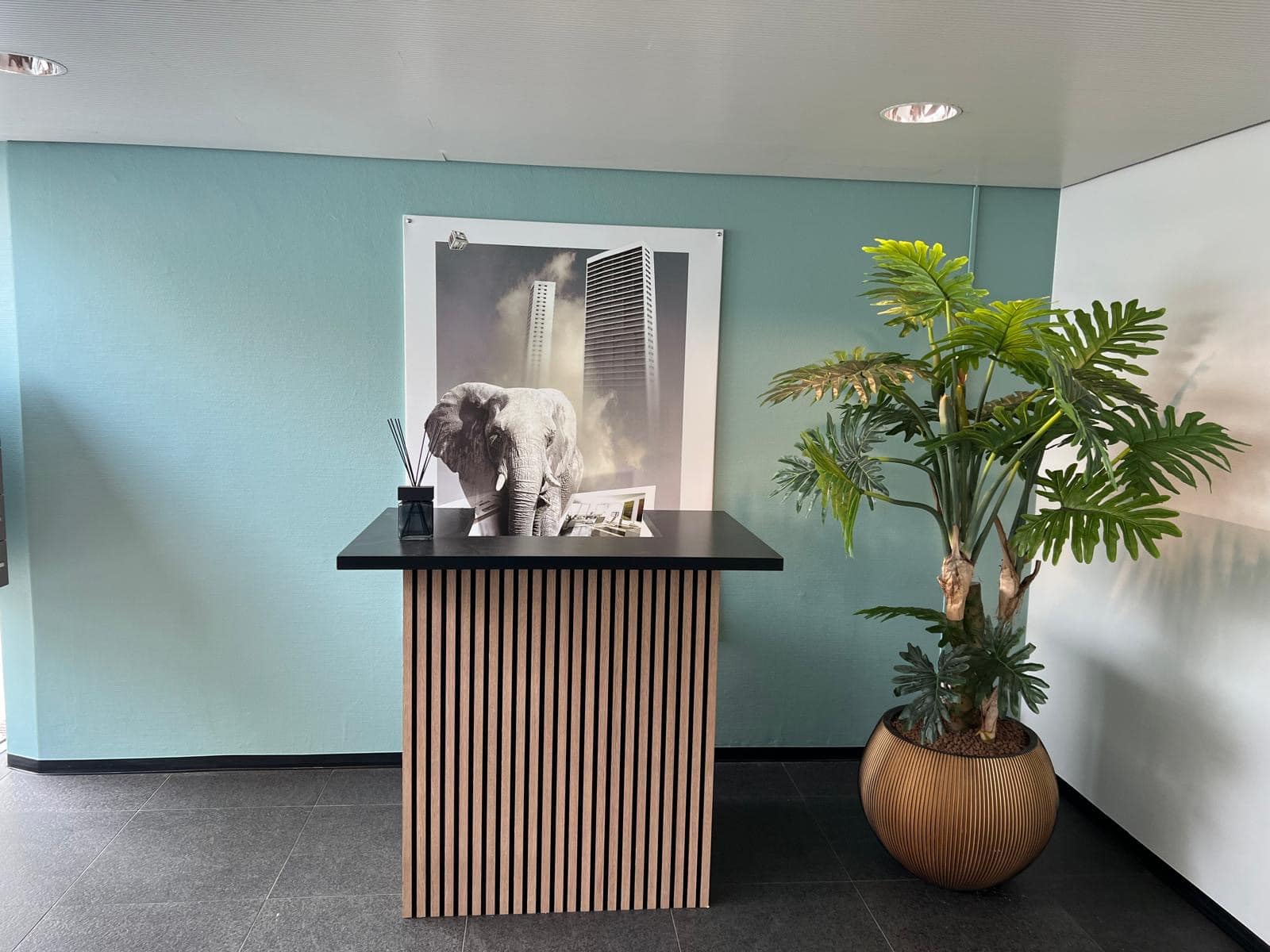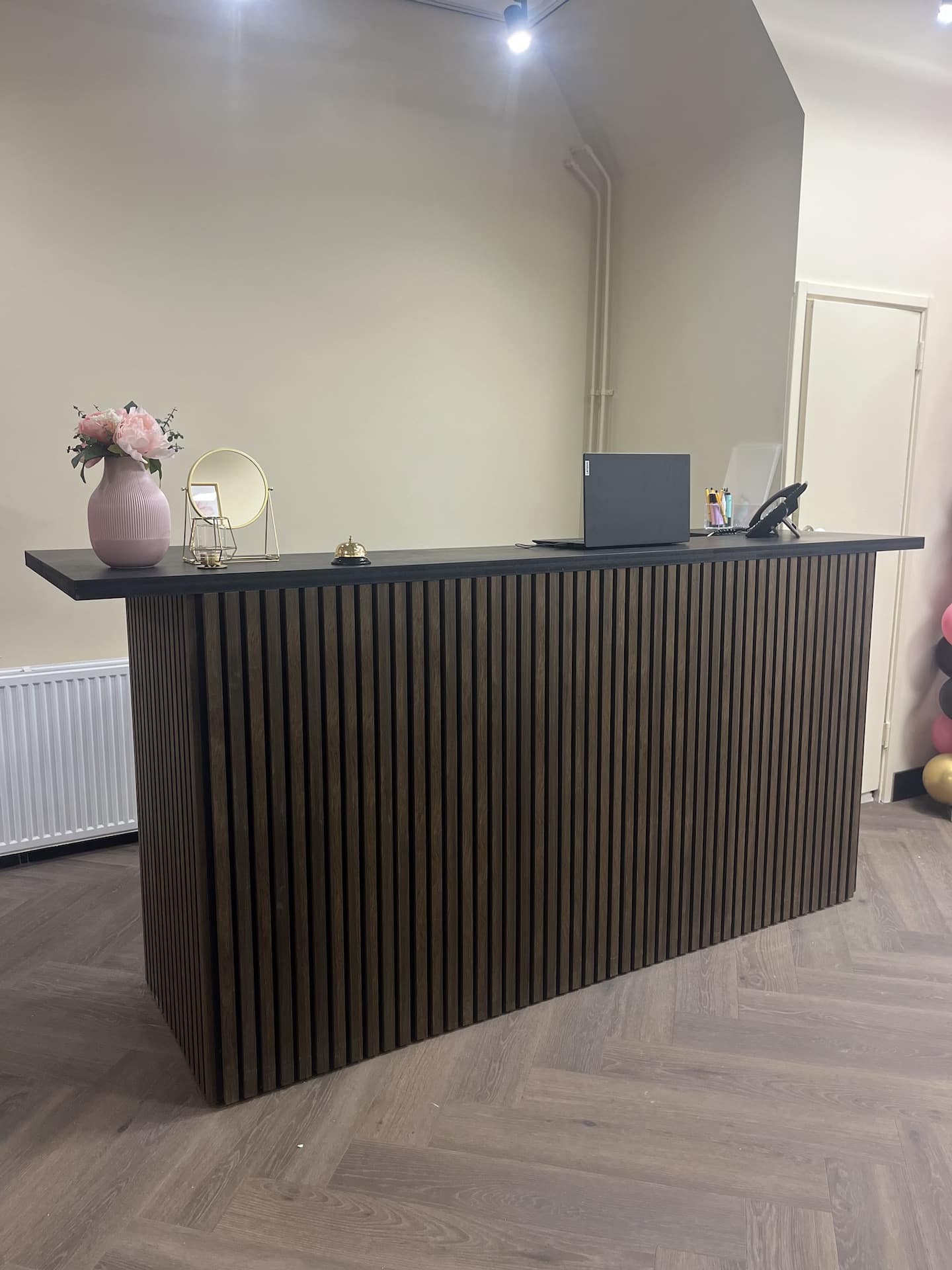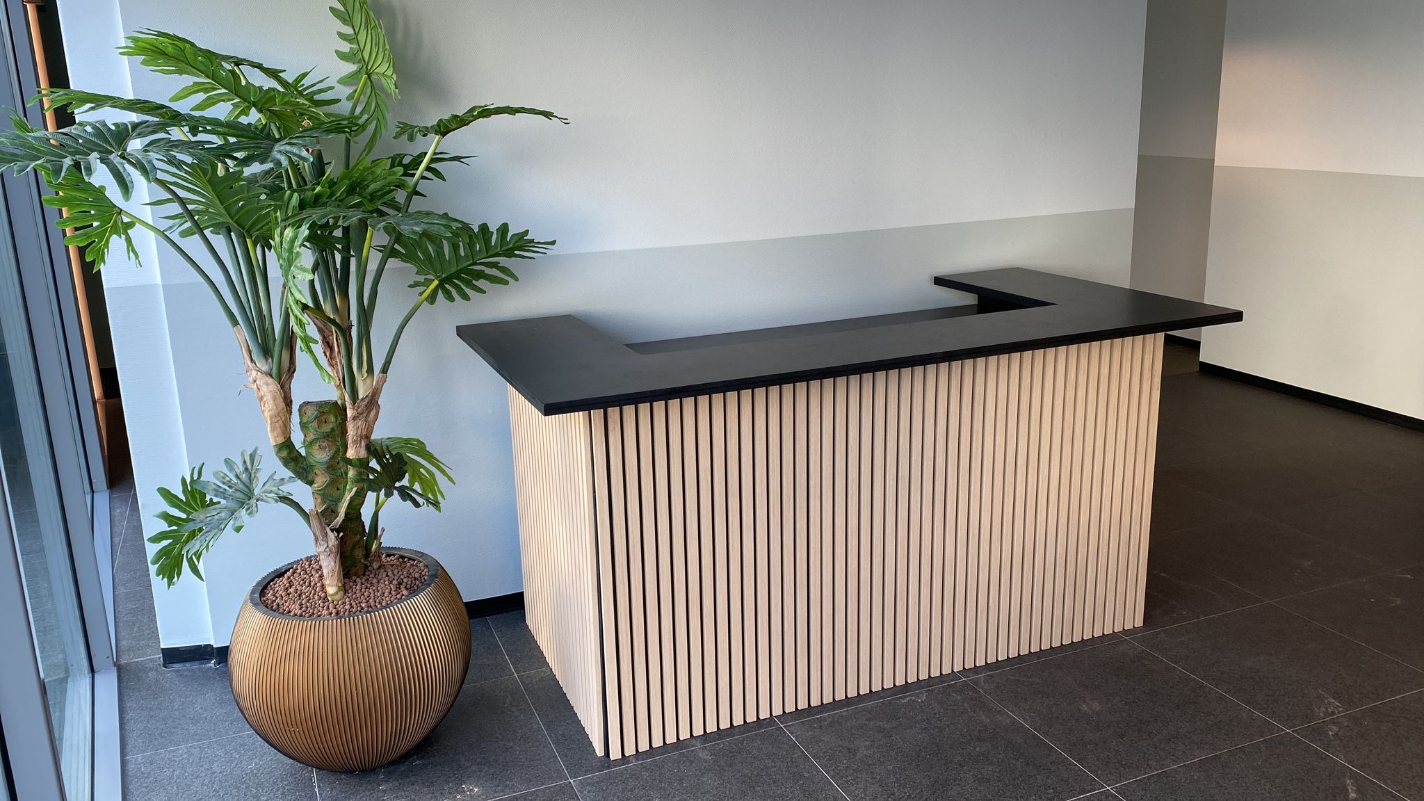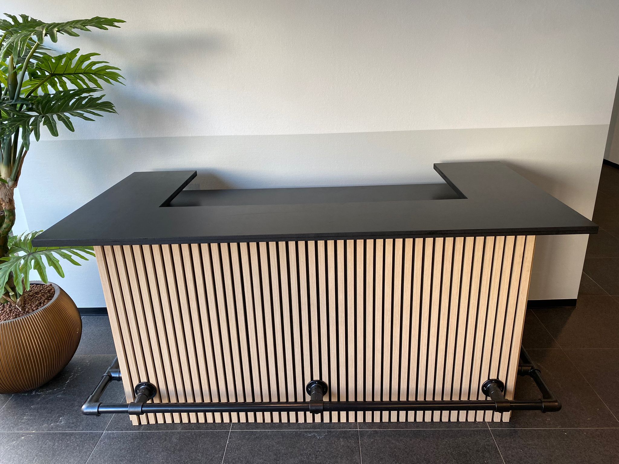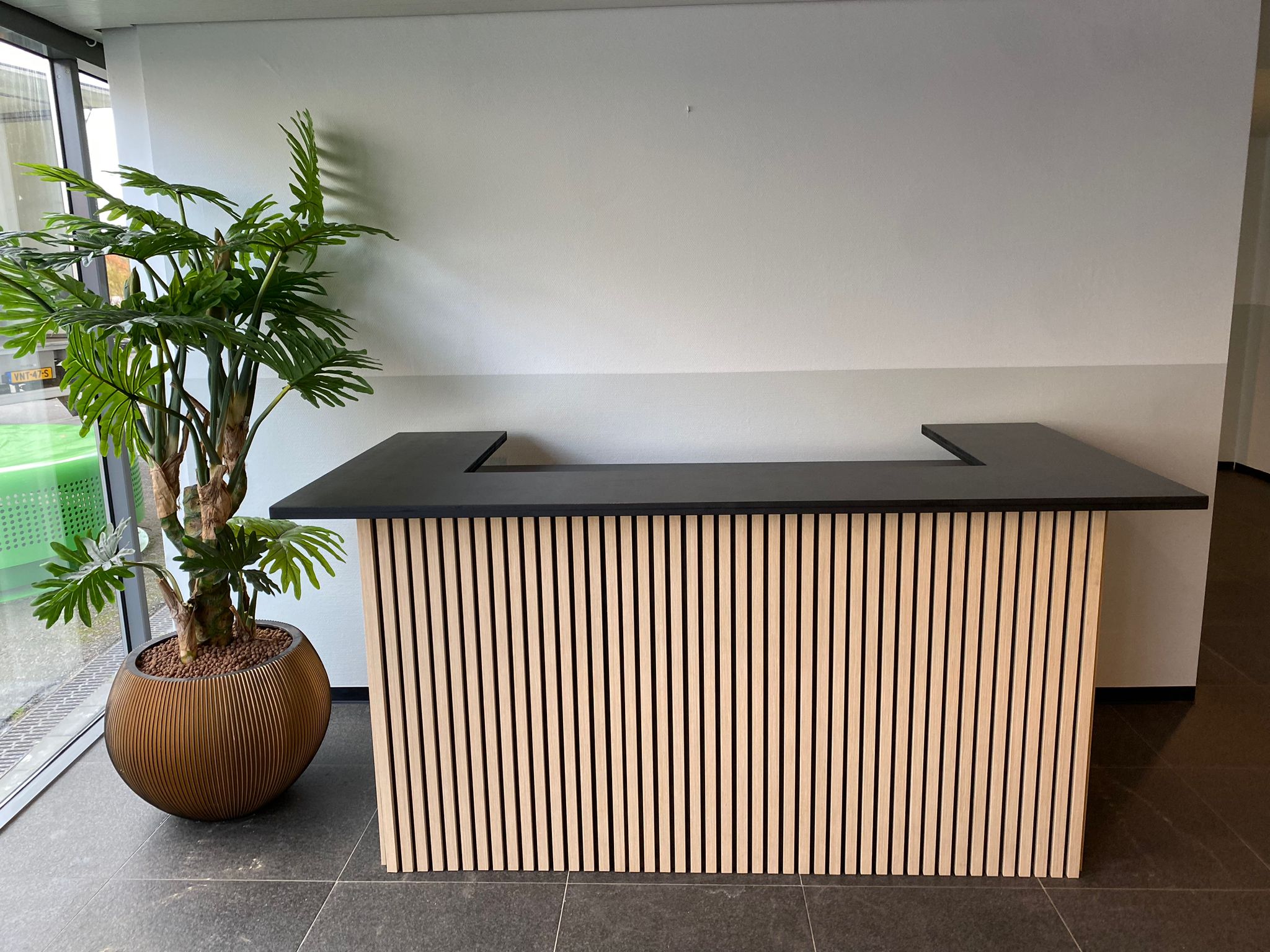 Eikenhouten toonbank Elodie met akoestische panelen