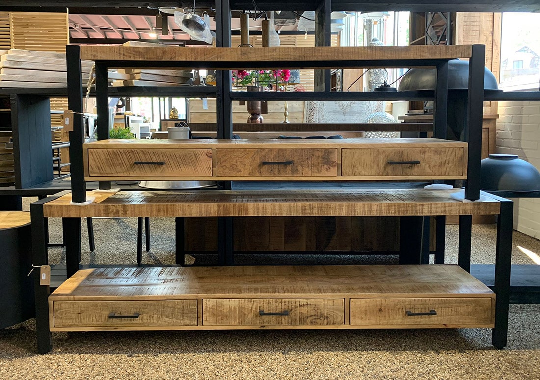 Mangohout tv-meubel Lars met 3 laden